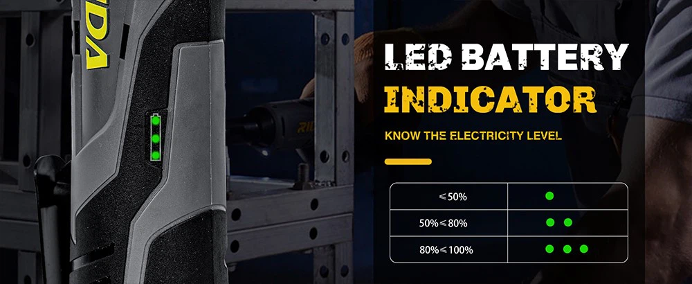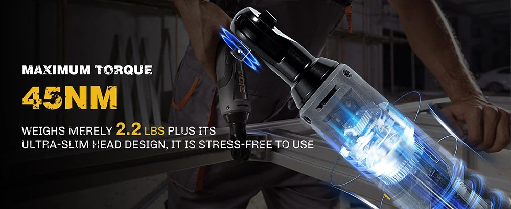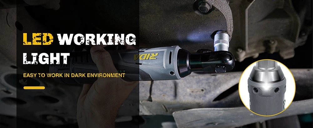 ● 3/8'' square drive, its low profile head design allows users better access in tight spaces, convenient built in LED light for working in dim spaces.