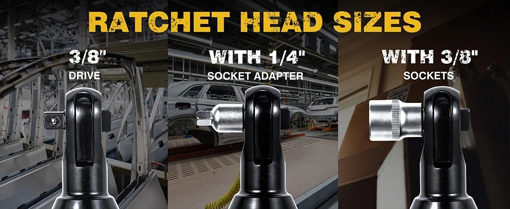 ● Portable, without restrictive power cables,suitable for indoor and outdoor use. With a max torque of 33 ft-lbs at 250RPM and variable speed trigger, no constant load noise from the air hose.